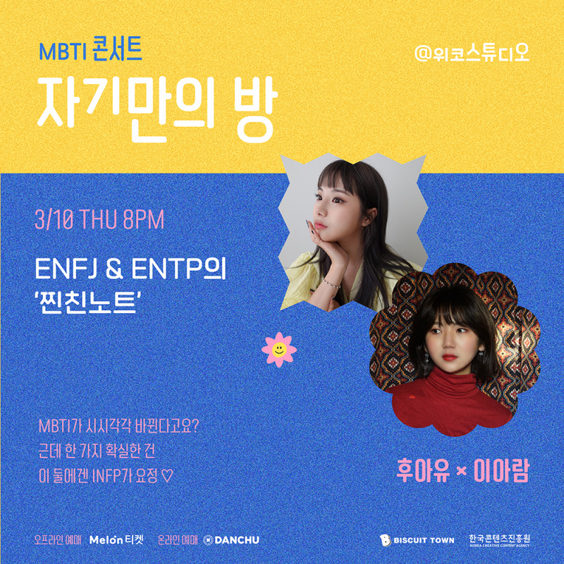 - MBTI 콘서트 <자기만의 방> 공연은 오프라인과 온라인 동시 진행됩니다.
