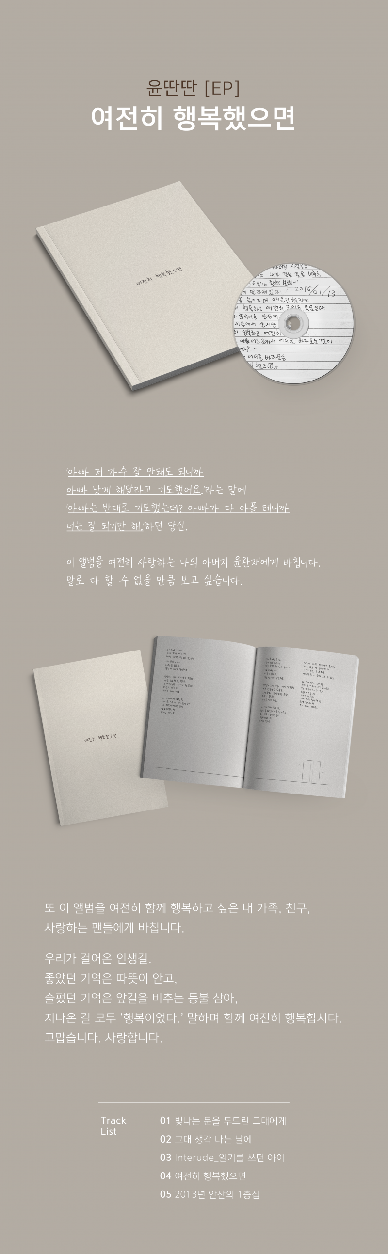 이 앨범을 여전히 사랑하는 나의 아버지 윤완재에게 바칩니다.